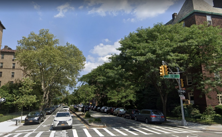 34th Avenue between 73rd and 80th Streets was part of the open streets pilot at the end of March (Google Maps)