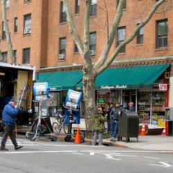 Despite a great deal of controversy about cars being towed in Sunnyside Gardens to make way for this production, “The Rememberer” starring Poppy Montgomery is progressing. Here is a shot taken of Montgomery while filming this morning.