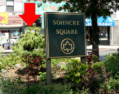 The square, which was named after a Woodside resident who was killed in WWI, is located at the intersection of Woodside and Roosevelt Aves.