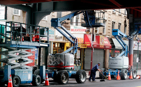 For the last several weeks, crews hired by the city have been repainting the support structure of the elevated J/Z train tracks that runs above the avenue. Before the crews paint, they post yellow no parking signs on all the meters for several blocks that are effective for sometimes as long as a week, but according to business owners and workers on the avenue, they do not work each of those days.