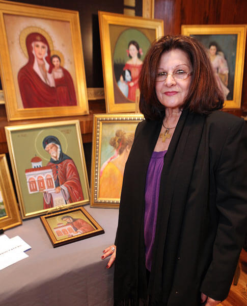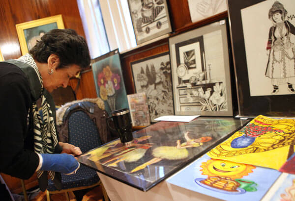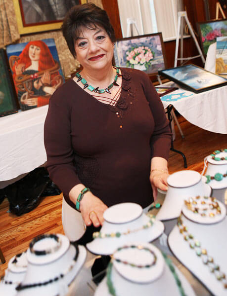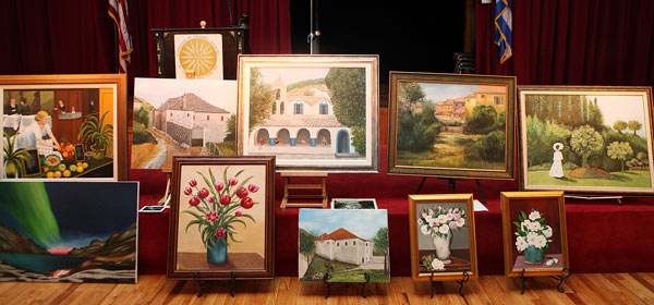 Paintings, prints and jewelry were on display during the annual arts and crafts exhibition at the Stathakion Center on 29th Street in Astoria Saturday of last week. The show was sponsored by the Culture Committee of the Federation of Hellenic Societies of Greater New York.