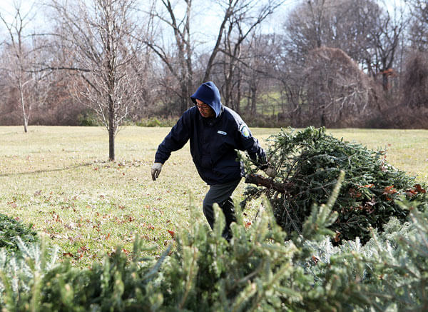 Hundreds of trees were chopped and turned into mulch at Kissena Park during MulchFest, an annual event organized by the Parks Department.