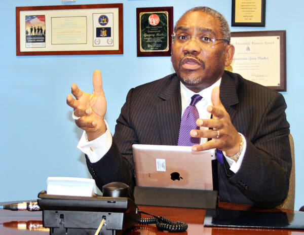 U.S. Rep. Gregory Meeks (D-St. Albans) described 2012 as a year of promise as he met with reporters in his Jamaica district office Tuesday.