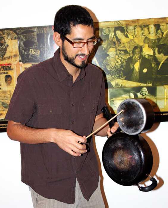 One of those artists was Hector Morales, who uses found objects — a water cooler jug, pots and pans, plastic bottles filled with rice — to create music, the rhythms themselves recycled through past cultures.