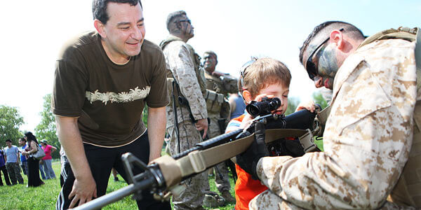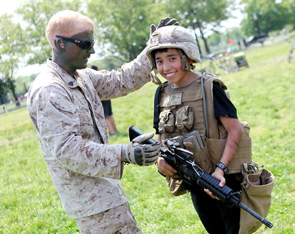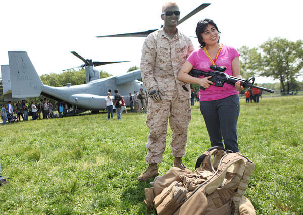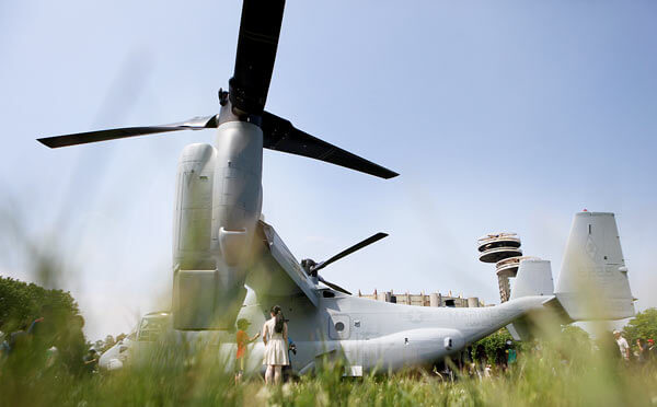 Marines from Marine Medium Tiltrotor Squadron 264, the “Black Knights,” landed in Flushing Meadows Corona Park Sunday during a Fleet Week demonstration.