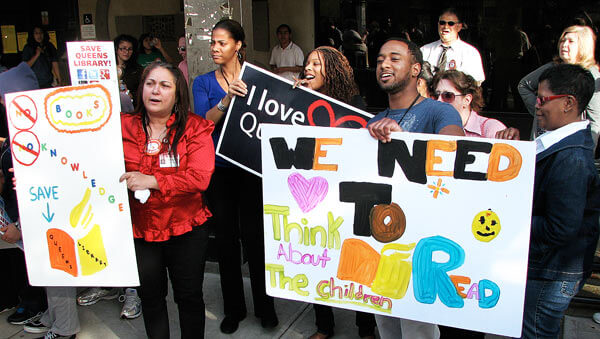 The fight to save city libraries from budget cuts took to the beach when a rally was held in Rockaway last Thursday.