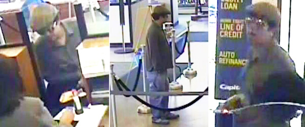 The first of the three robbery took place in November 2011, when what witnesses describe as a gun-slinging senior allegedly knocked over the lending institution by showing the teller a revolver and making off with $1,000 in cash.