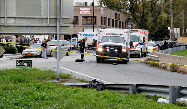 In Bellerose, Lopez’s Nassau County Emergency Services Unit vehicle sat next to the closed down Cross Island Parkway as police searched for clues.