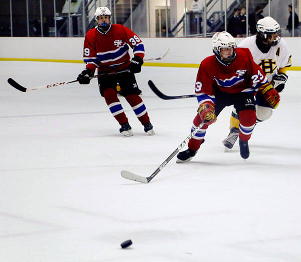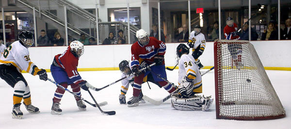 Holy Cross didn’t make it easy. The junior goalie was tested immediately by a Stephen Pallos wrist shot from the slot. Lettire, who transferred to SFP last year, made the save and a minute later he made an even more impressive one on a backhanded shot from the hash marks.