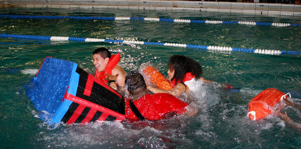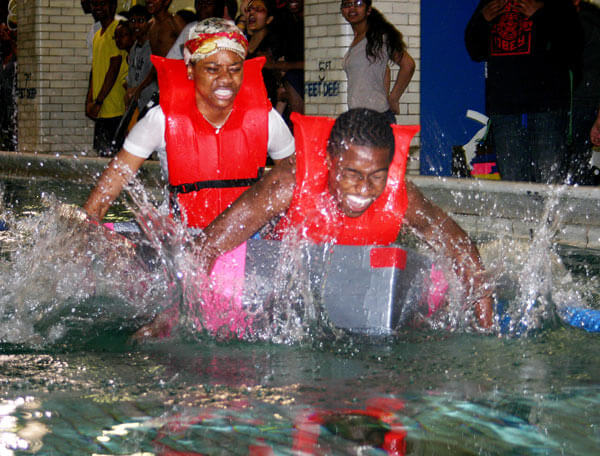 More than two dozen teams of excited students attempted with varying degrees of success to traverse the pool at the Jamaica High School campus last week in cardboard boats held together with duct tape.