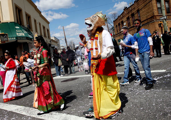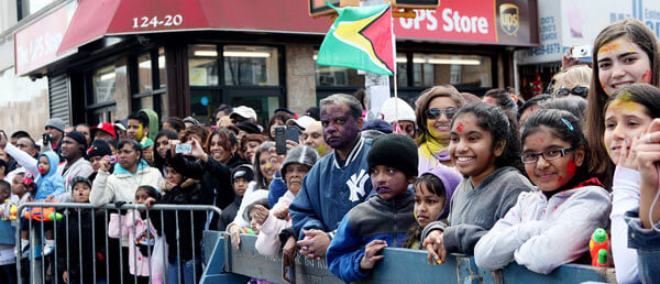 A large crowd filled with many young people turned out for Saturday’s Richmond Hill Phagwah Festival, which included a parade that wound its way along Liberty Avenue and 125th Street and featured floats, dancers, blaring music and multi-colored confetti.