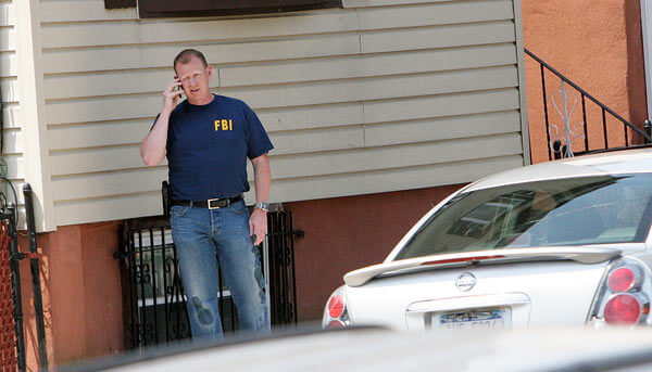 FBI vehicles lined the street in front of the red brick house, at 81-48 102nd Road, where blue and gray tarps had been positioned to cover the driveway.