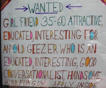 At the same time, Liesner is advertising for a girlfriend. There is a sign in the window: “Wanted 35-60 [year-old], attractive…for an old geezer.”
