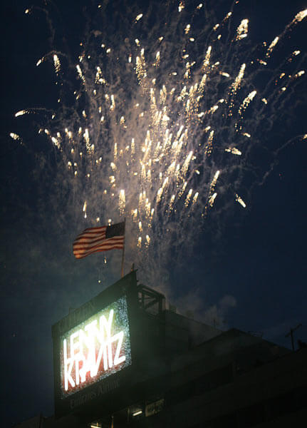 Following a performance by musician Lenny Kravitz and a fireworks display, Serena Williams, the top-ranked female player, took on and defeated Francesca Schiavone.