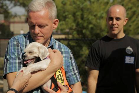 Van Bramer bonded with one of the canines –Lil Ricky—and was pondering whether to adopt him.