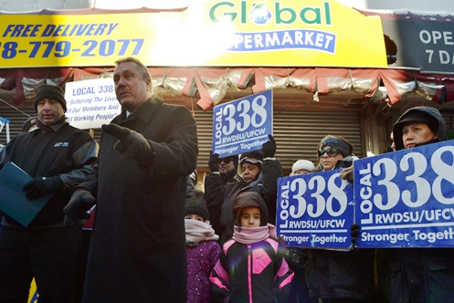 “We are extremely disappointed that over 50 families are still out in the cold, “said John R. Durso, president of Local 338 RWDSU/UFCW. “After discussions with Mr. Haque in December, he had indicated to us that he was willing to rehire many of the terminated workers. This is something we have yet to see happen. His blatant disregard of both the workers and the community that he serves is unacceptable.”