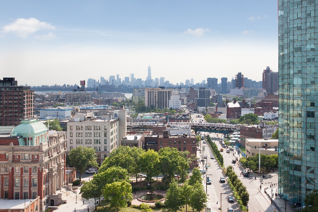The 14-story building by Ekstein Development and L+M Development Partners is located on the corner of Jackson Avenue and Purves Street near the Court Square Park and One Court Square, the tallest building in the borough.