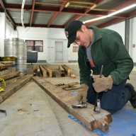 The front part will become home to the bar and the tasting room. He already has long wooden beams in the site that he plans to fashion into tables.