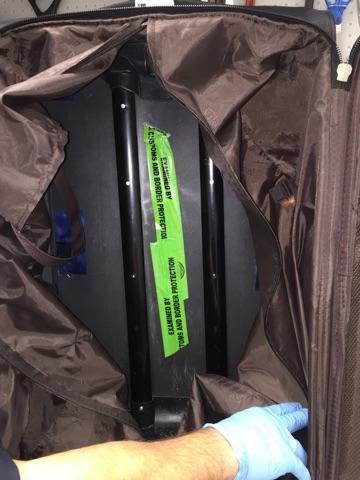 CBP officers found a white powder inside the suitcase, which tested positive for cocaine.