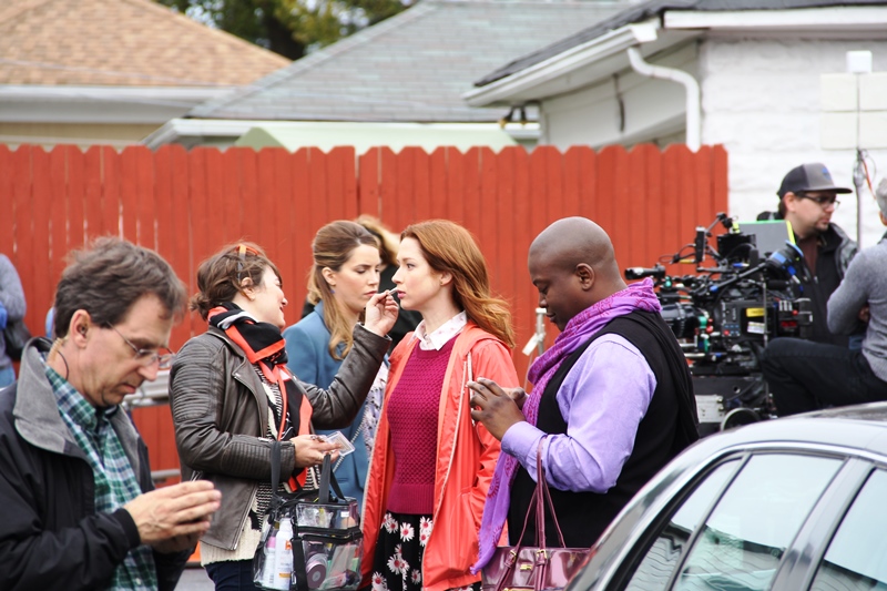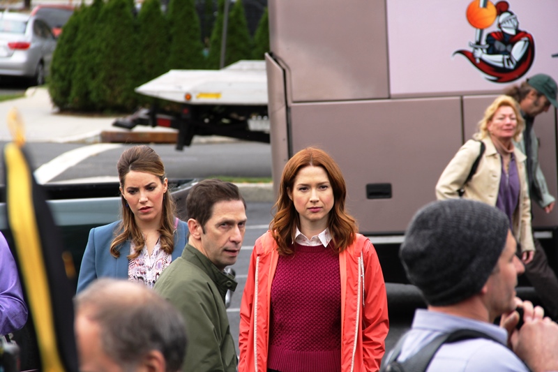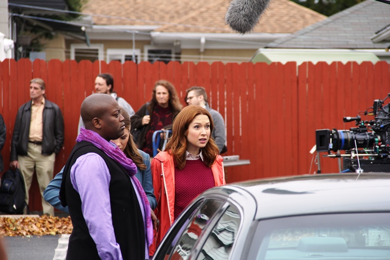 Fey, who co-created the show, oversaw production as the camera rolled on the star of the show, Ellie Kemper from “The Office.” Trucks and trailers clustered around St. Josaphat’s Church and the crew used the church’s parking lot for the scene.