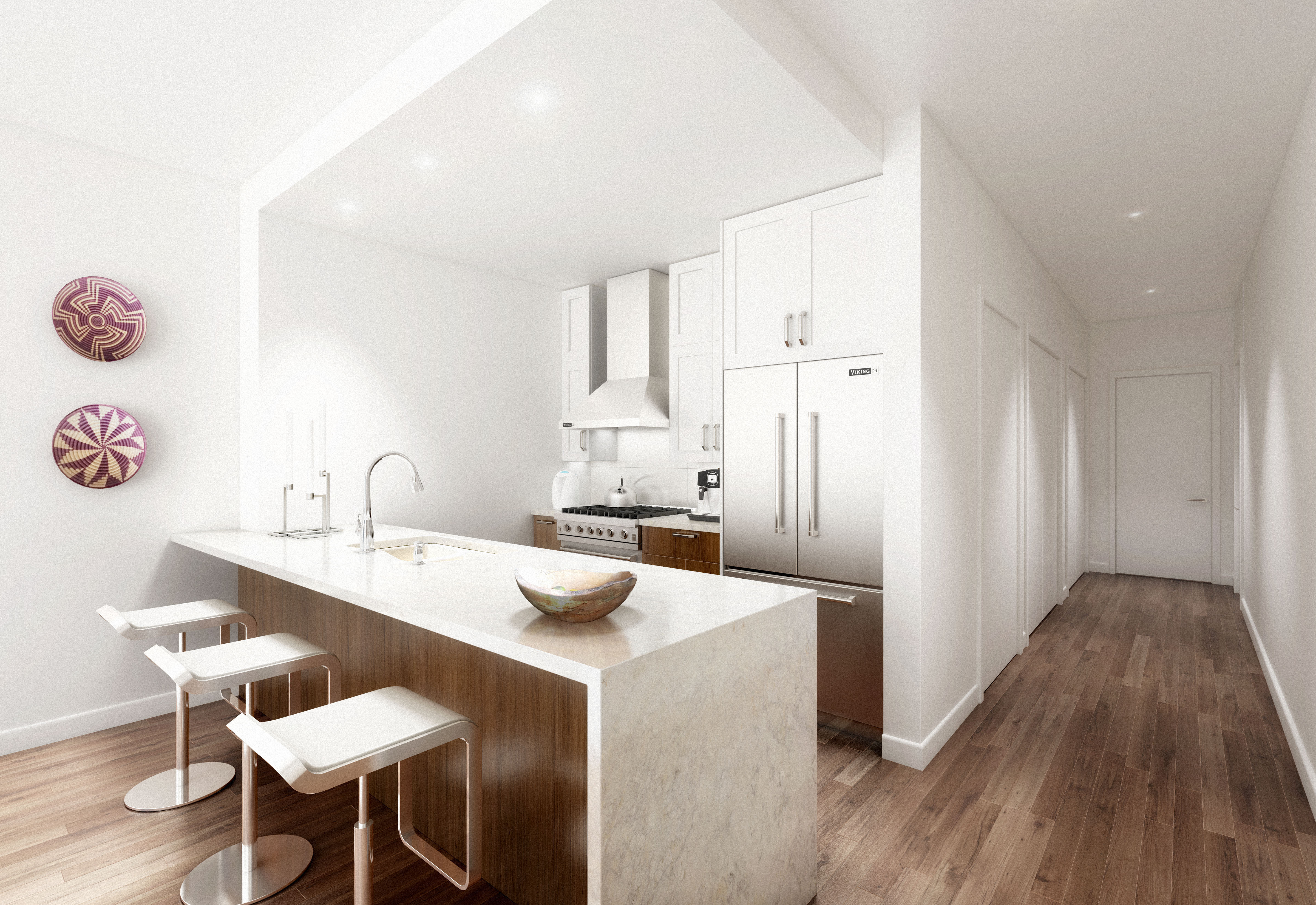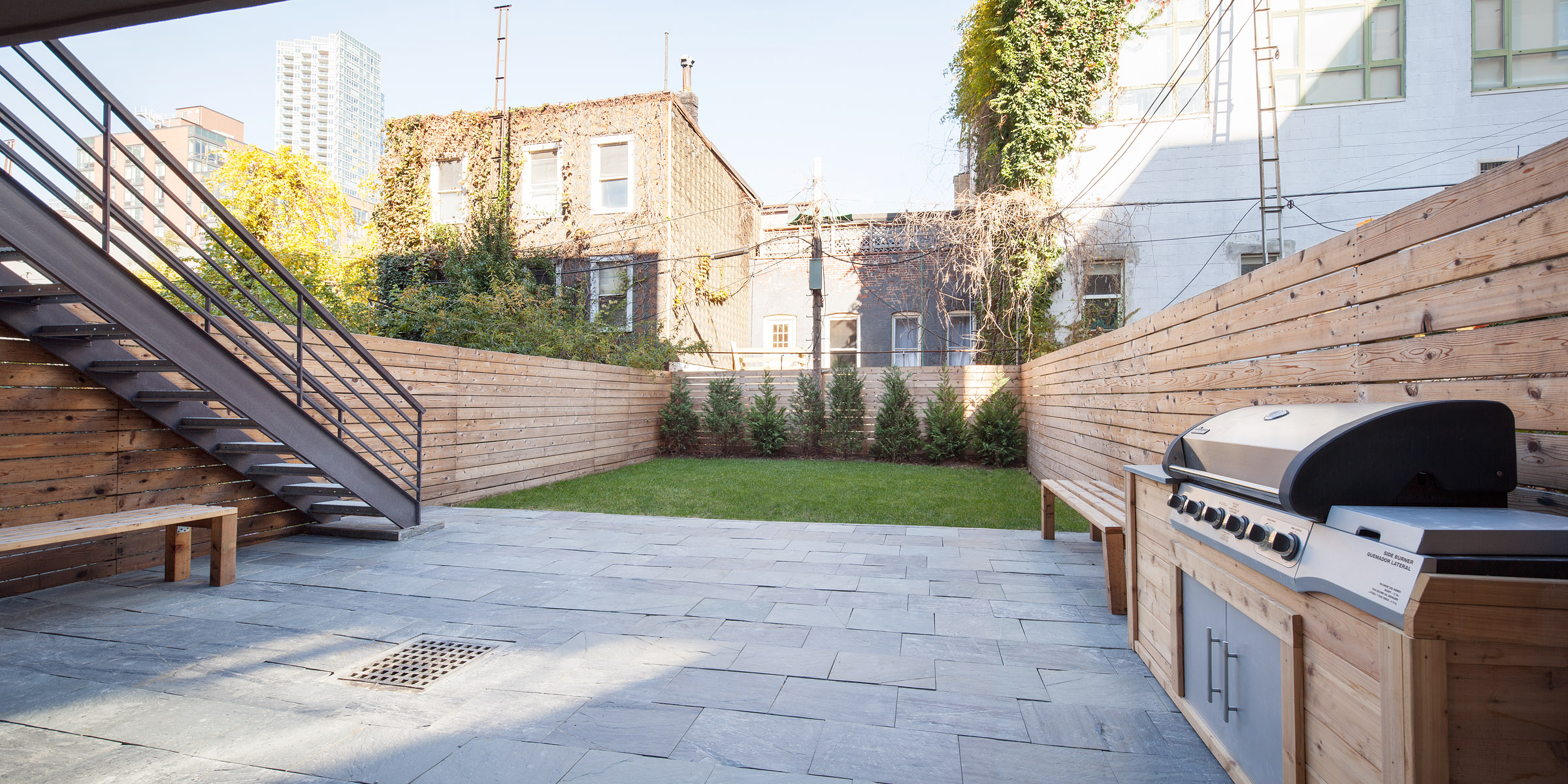 The unit will have three bedrooms, a den that can be converted to a fourth bedroom, two-and-a-half bathrooms, and a 1,100-square-foot yard.