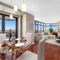 This two-bedroom unit has 1,135 square feet of space, two bathrooms and two balconies. The apartment features views overlooking Flushing Meadows Corona Park. The building offers a doorman and full-time concierge, as well as a pool, a sauna, a steam room, and Jacuzzis. An E and F subway station is a short walk away.