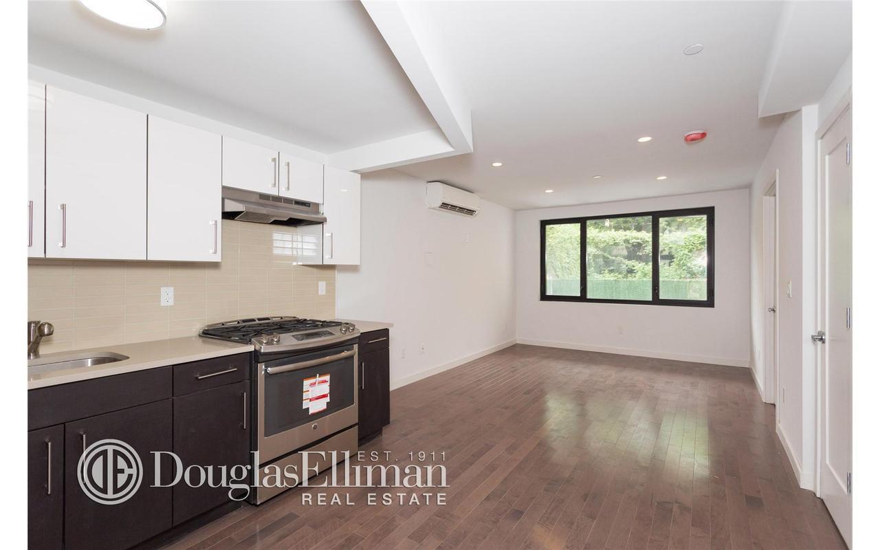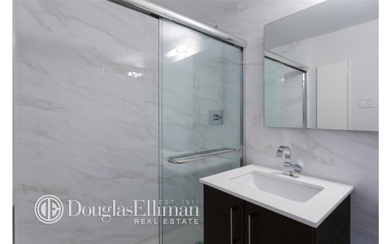 This two-bedroom apartment has two bathrooms and a total of 1,055 square feet. Rooms have hardwood floors and floor-to-ceiling windows. The Bayside building also features a gym and parking spaces and is pet-friendly. It is blocks away from the LIRR train station.