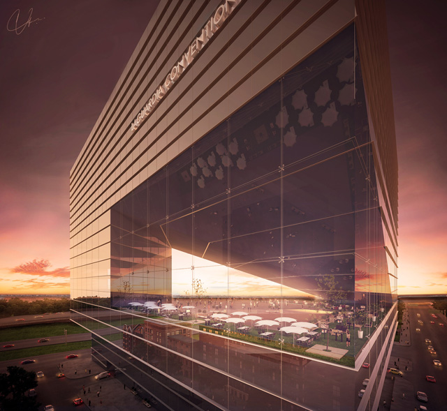 The group originally planned for a $200 million hotel and exhibition hall, with 292 hotel rooms, 236 apartments, a shopping center, a high-class restaurant and a 300-space garage.