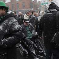 Snow didn’t stop Mayor de Blasio from marching through Sunnyside on Sunday during the traditionally gay-friendly St. Pat’s for All parade.