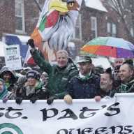 “Here’s an example of a parade that’s inclusive of all and celebrates Irish heritage in a way that everyone can be a part of,” said de Blasio, who wore a green Department of Sanitation jacket to the parade down Skillman Avenue in the spirit of the day and the snow clearing that followed.