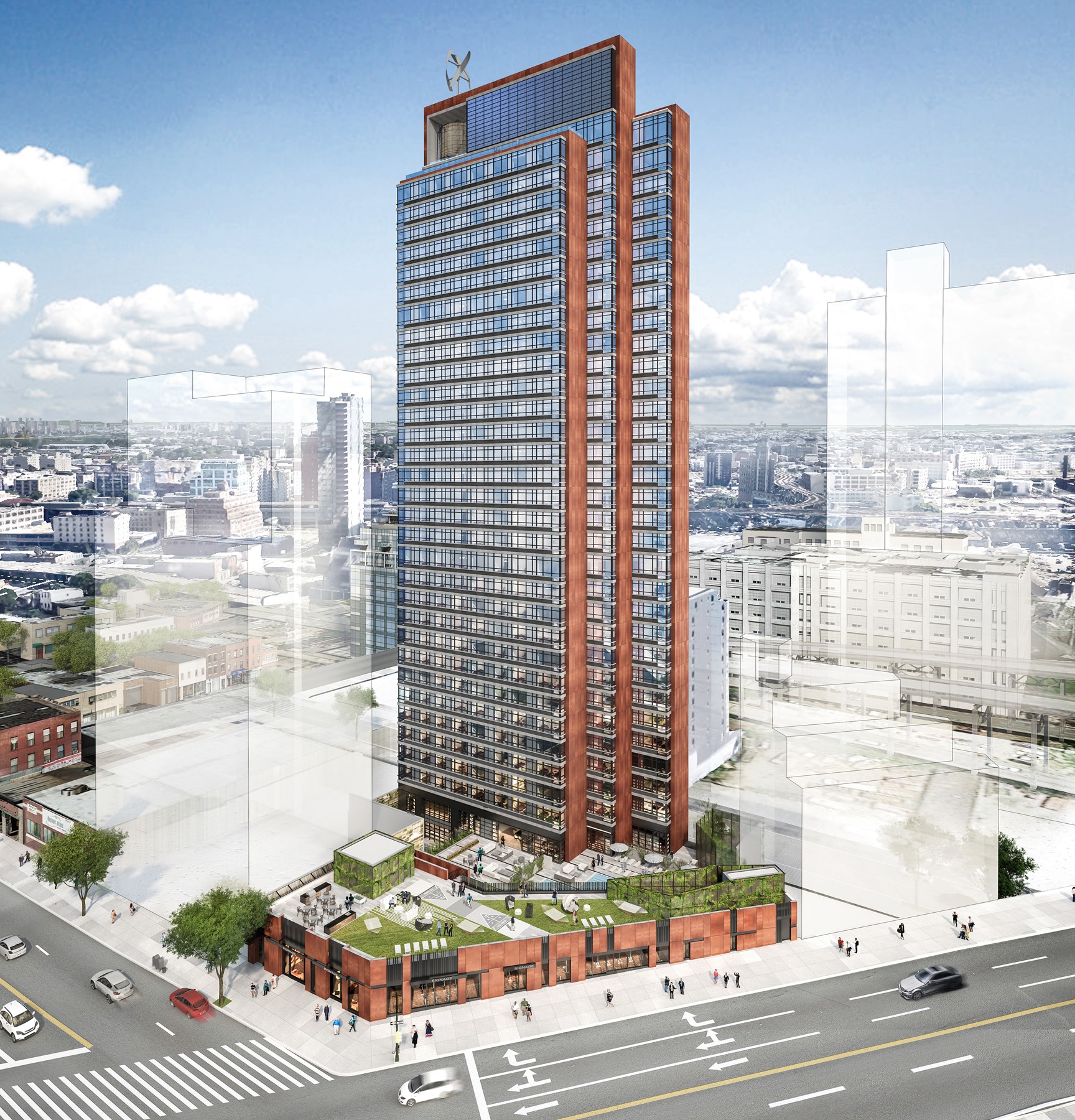 Also, on the 35th floor there will be a residents’ lounge with a billiards room, wet bar and an outdoor terrace with views of the Manhattan skyline. There will be a 75-spot parking garage under the building.