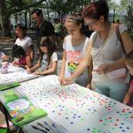 Educational activities were also provided for children during It’s My Park Day, and each proved to be a hit with local tykes of all ages. A large group continuously colored and scribbled on an outline drawing provided by Charles Basman of Arthouse Astoria, a local conservatory that offers music and painting classes at an affordable rate. Volunteers also were teaching how to transplant and care for small flowering plants which the children were able to take home to keep.