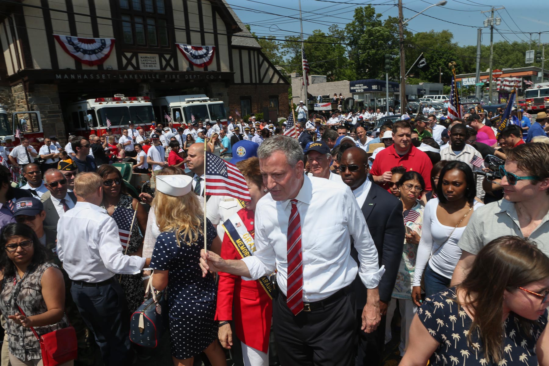 Mayor Bill de Blasio marched in the Little Neck/Douglaston Memorial Day Parade, which began at 2 p.m. on Northern Boulevard and Jayson Avenue, alongside U.S. Representative Grace Meng, Borough President Melinda Katz, Public Advocate Letitia James, Councilmen Paul Vallone and Mark Weprin and Assemblyman Ed Braunstein.