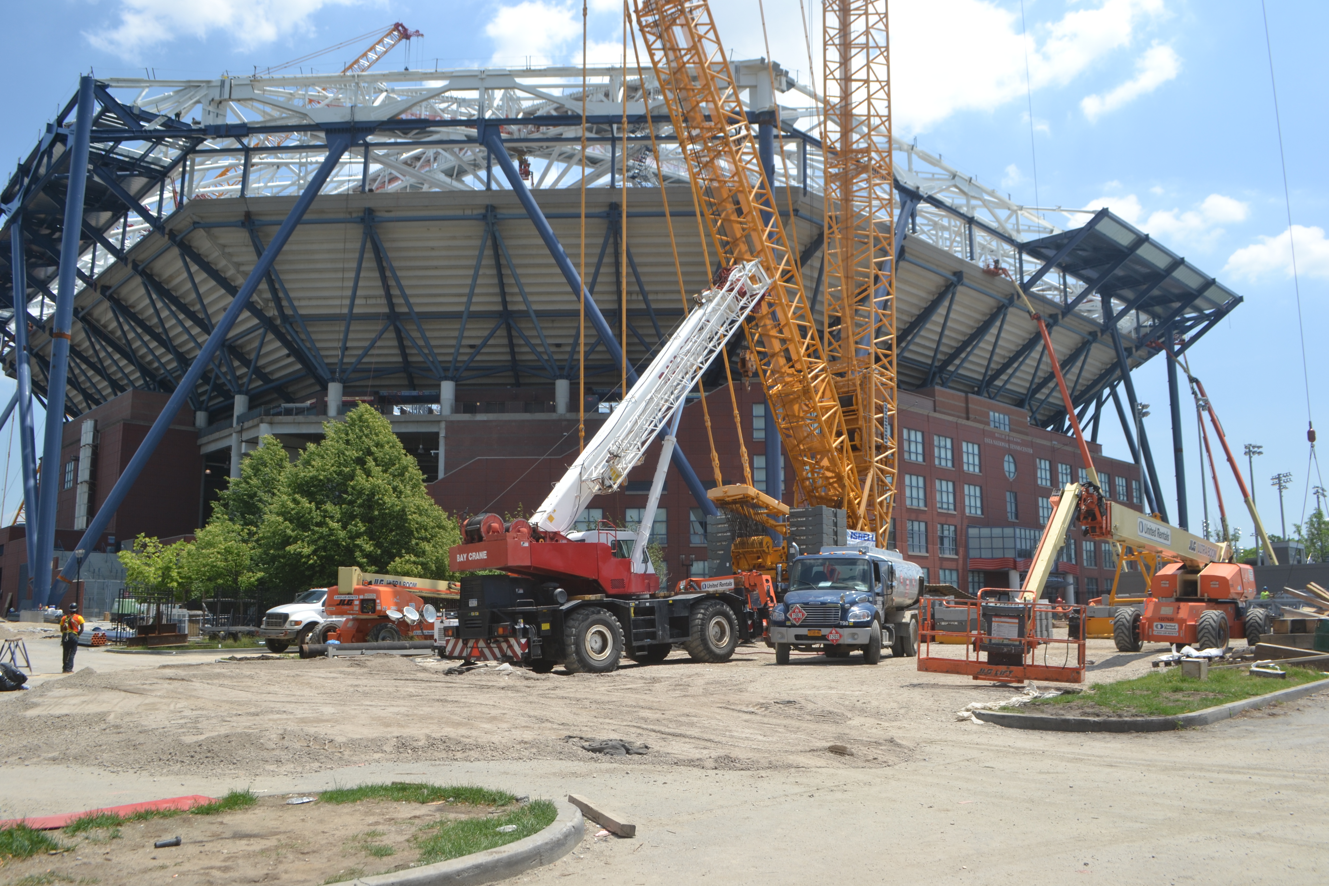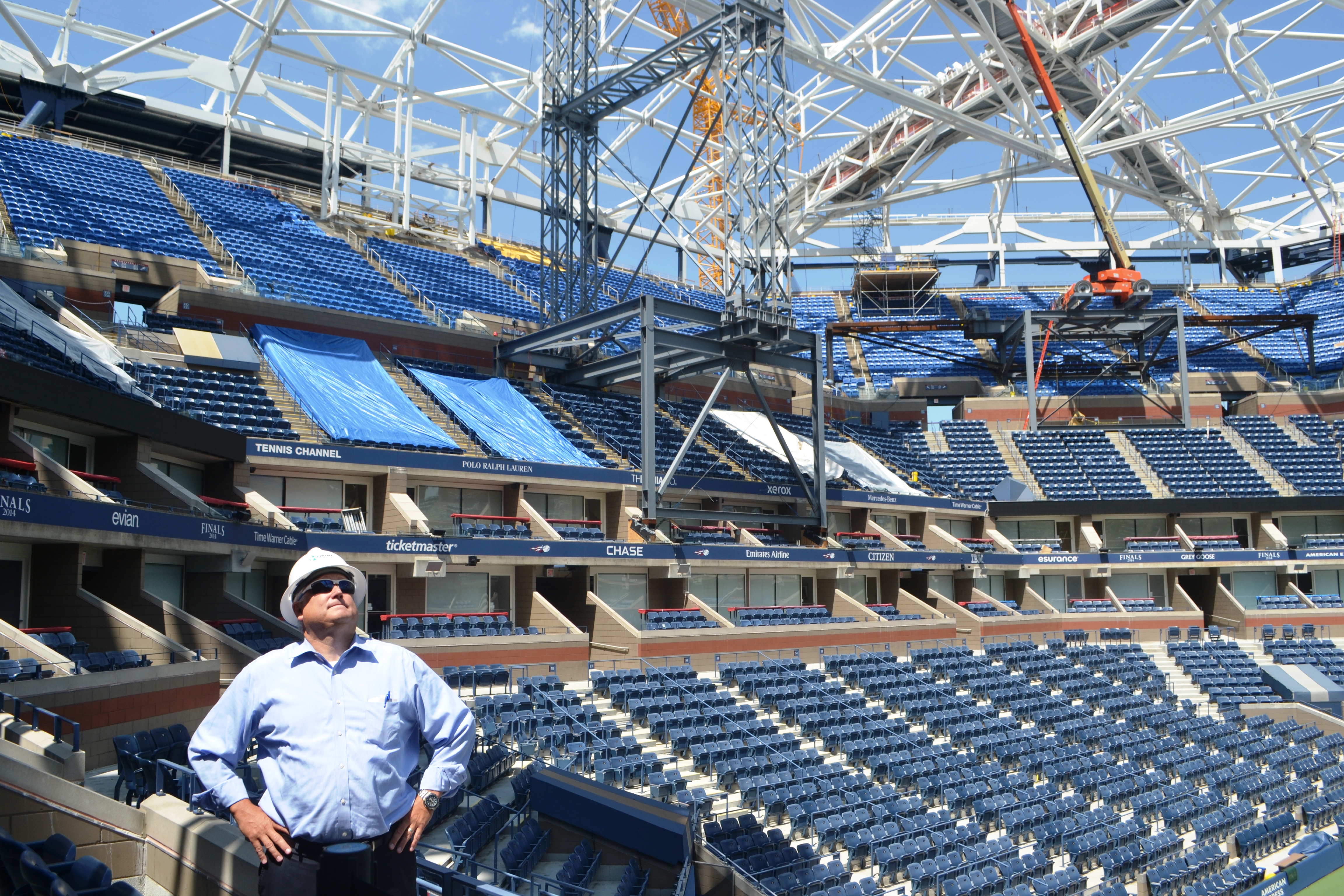 In the coming weeks, the giant cranes that were used to build the roof’s frame will be removed and preparation for the 2015 U.S. Open will begin.