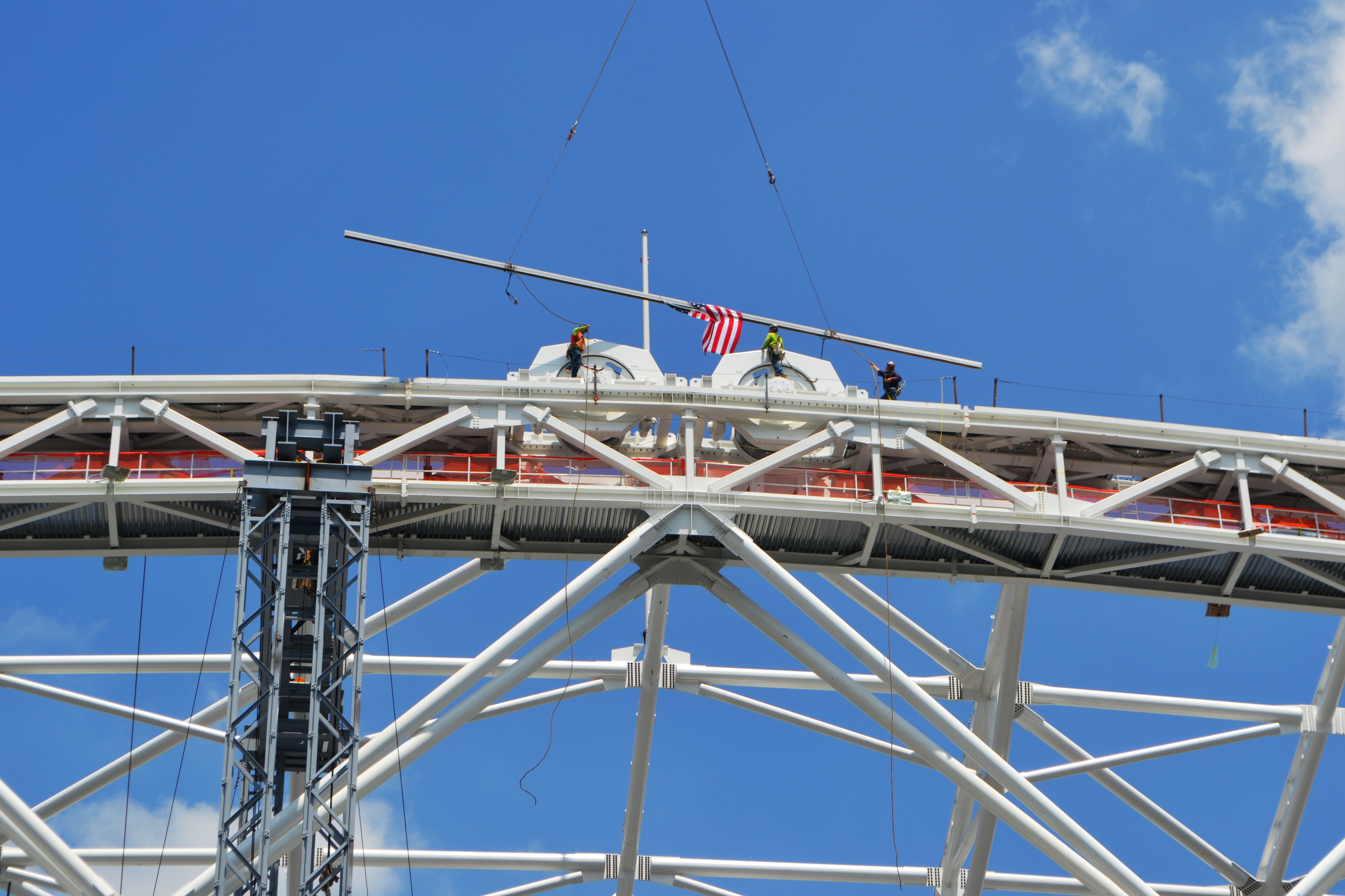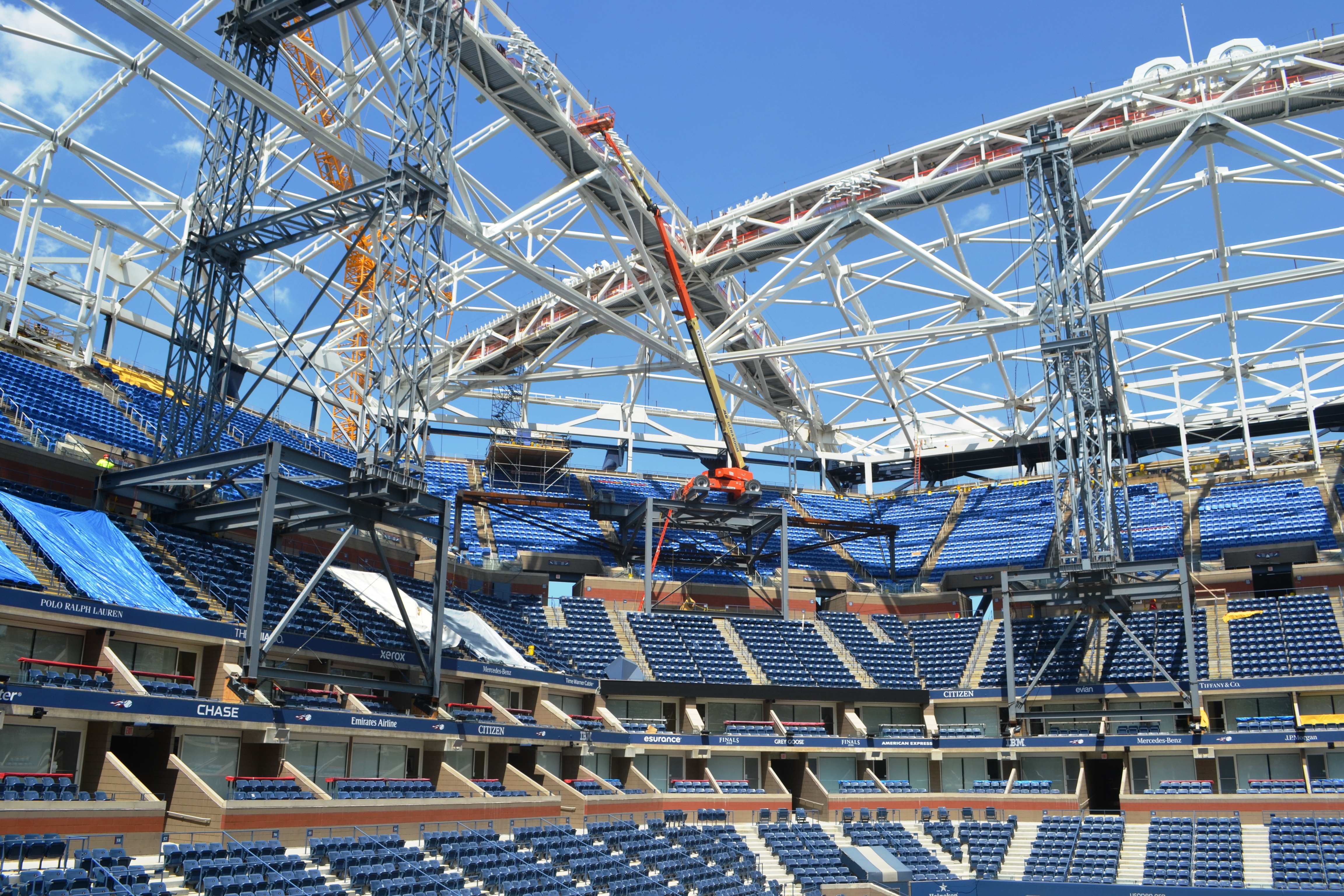 Final steel beam installed for U.S. Open retractable roof atop Arthur Ashe Stadium