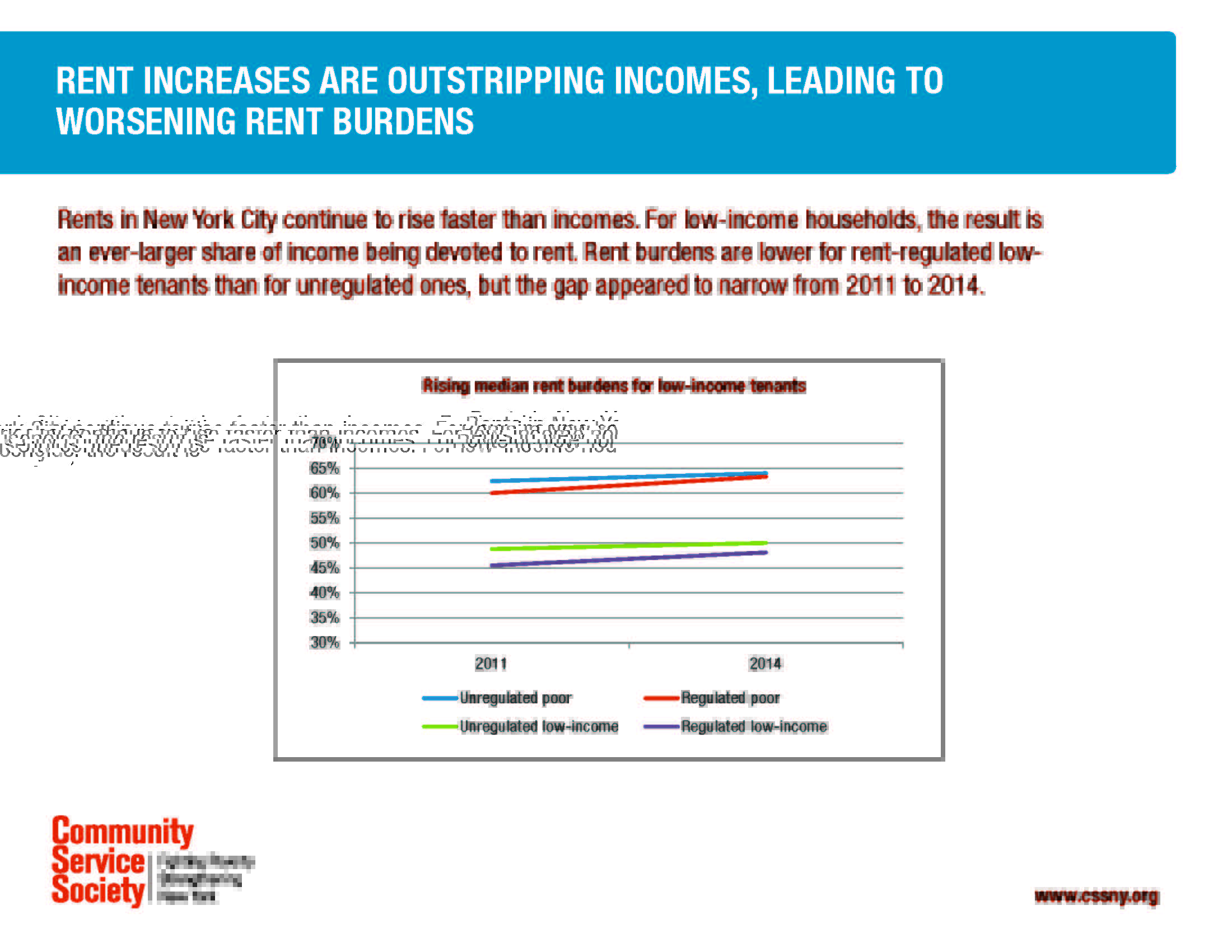 Rents throughout the five boroughs rose 32 percent between 2002 and 2014, according to a report released Monday by the Community Service Society, an organization that tackles the issue of poverty in New York.