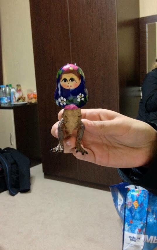 During her first trip abroad to Russia during the winter Olympics, she decided to take Walter with her because he was small enough to travel with and helped her feel calm during the trip.
