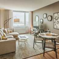 The new building has 312 residential units ranging from studios to one- and two-bedroom apartments. The luxurious interior design includes 9-foot ceilings, white oak flooring, Caesarstone quartz countertops and Italian porcelain tiles in bathrooms and kitchens, and Whirlpool stainless steel appliances. Rents start from $2,045 for a studio, $2,455 for a one-bedroom apartment, and $3,130 for a two-bedroom apartment.