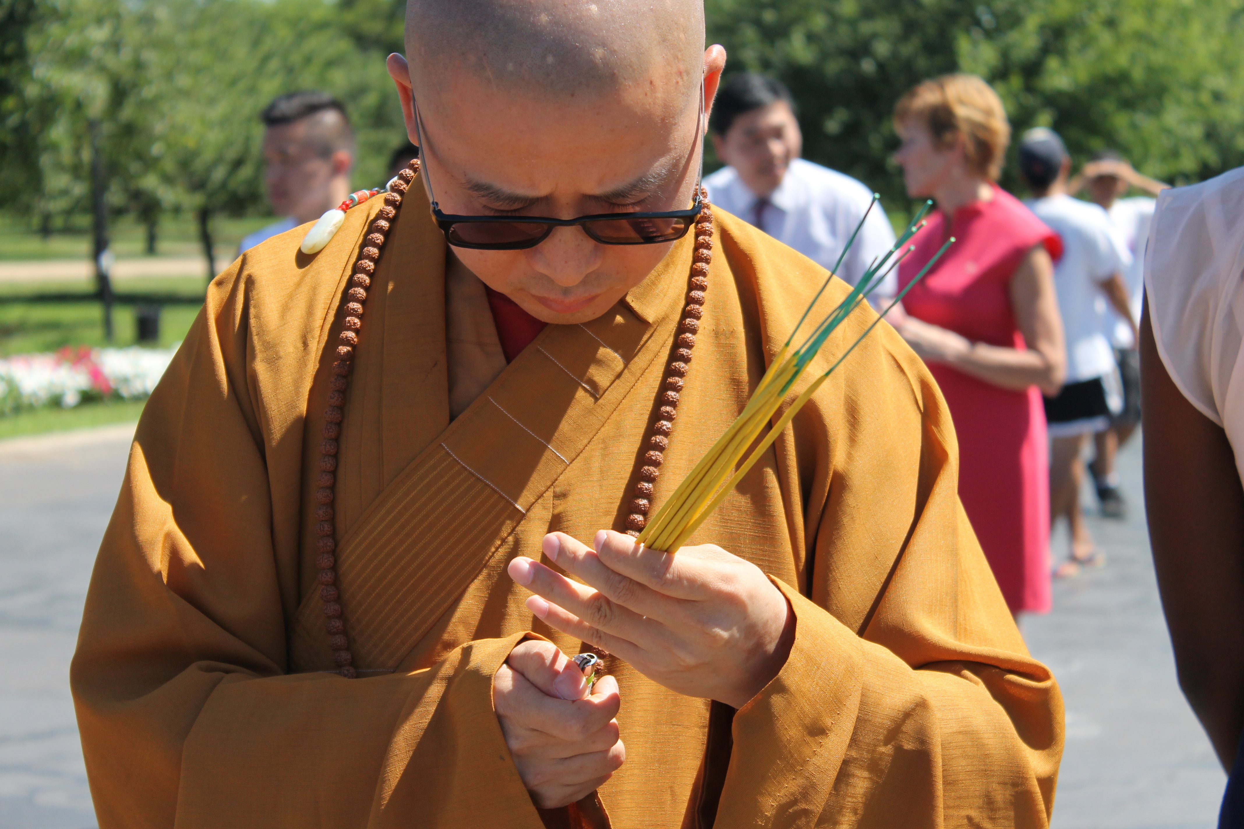 At Thursday’s event, a demonstration by Shaolin martial artists began the kickoff of the pre-race festivities, and then officials, event organizers and sponsors were guided by a Buddhist monk in blessing the boat with incense and dotting the eyes of the carved dragons with red paint.