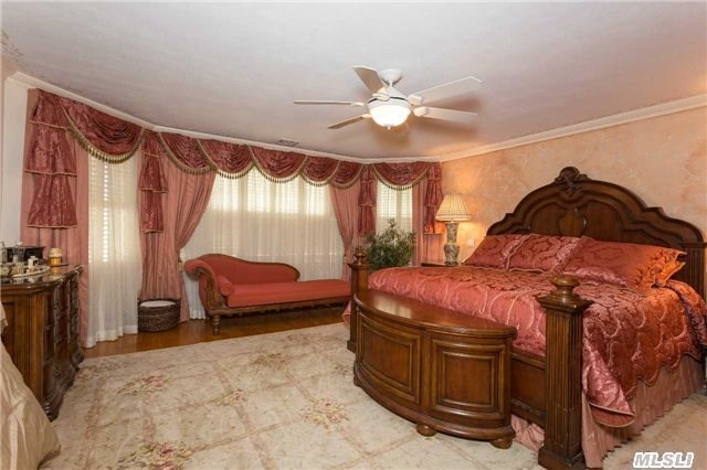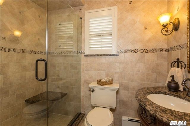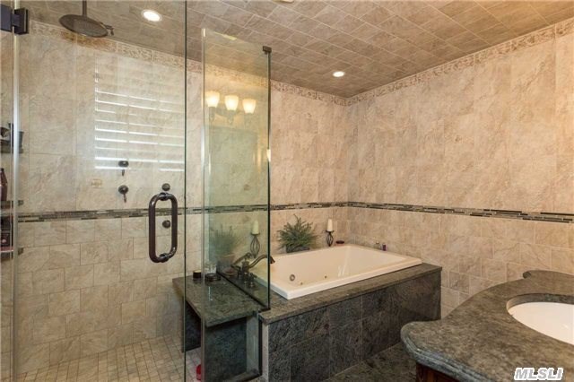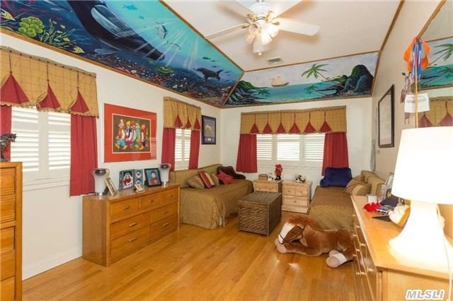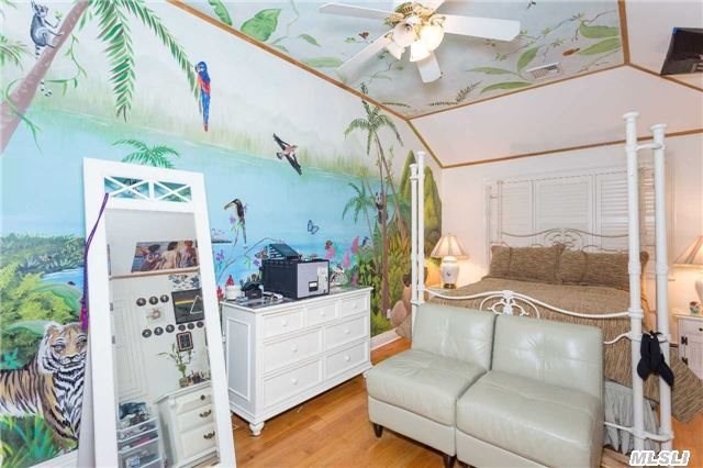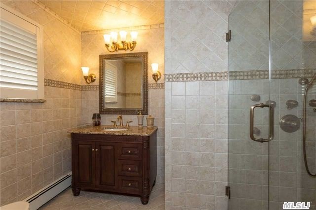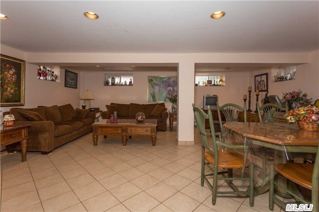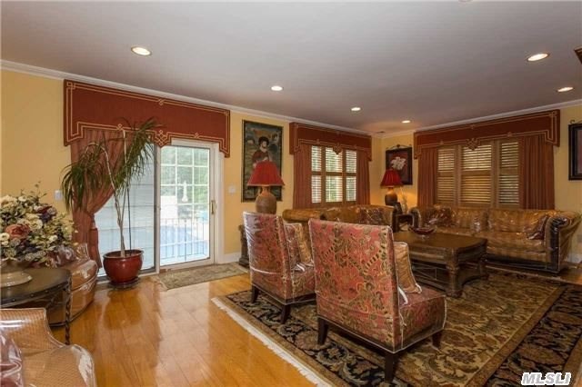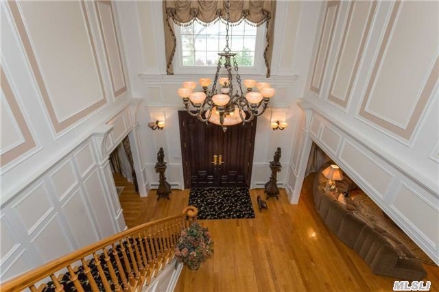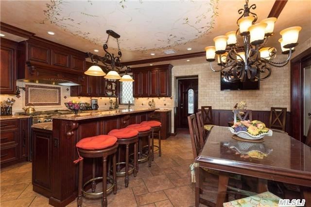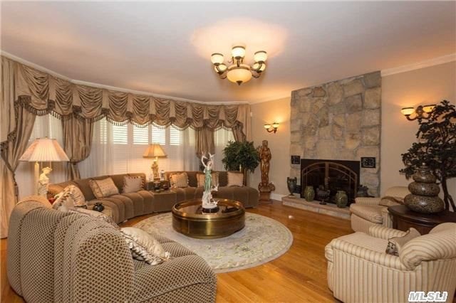This eight-room home, listed by Douglas Elliman Real Estate, features two eat-in kitchens, one on the first floor accompanied by a formal dining room, and one in the basement. The basement itself is spacious and ideal for a family room or den, and includes office space and a laundry room. A second family room on the first floor comes with a gas fireplace, making it a cozy place for a family to gather in the wintertime.