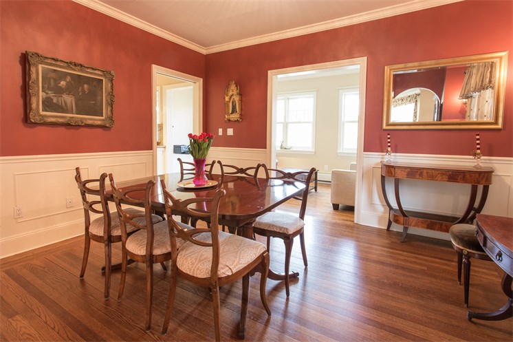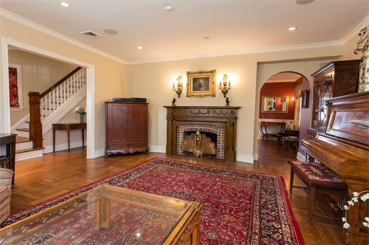 The house at 69-36 Harrow St. in Forest Hills offers comfort and luxury with five bedrooms, four and a half bathrooms, a wood fireplace with an elegantly carved mantle, and a 750-bottle wine cellar.