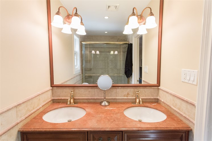 Other amenities of the house include cable- and Internet-ready wiring, a security system that includes interior and exterior cameras, and a lawn sprinkler system.