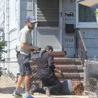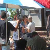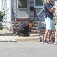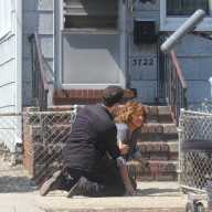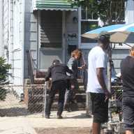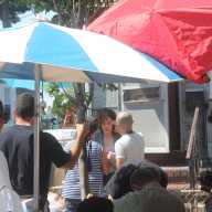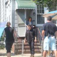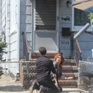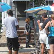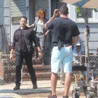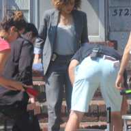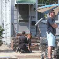 The shoot included a scene in which Lopez’s on-screen partner comes to her rescue after she is found lying on the sidewalk outside the home. The pair then walks up the stoop and into the house. Crew members were busy setting up the scene and touching up Lopez’s makeup in between takes.