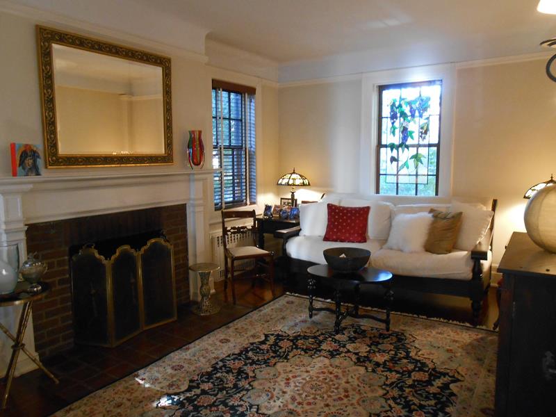 Designed by renowned architect Grosvenor Atterbury, this brick home features an enclosed front porch, finished basement, two-car detached garage and fireplaces in both the living room and dining room. The kitchen has been fully renovated and outfitted with custom cabinetry. The backyard includes a patio and a gas line for a barbecue grill, perfect for outdoor entertainment.