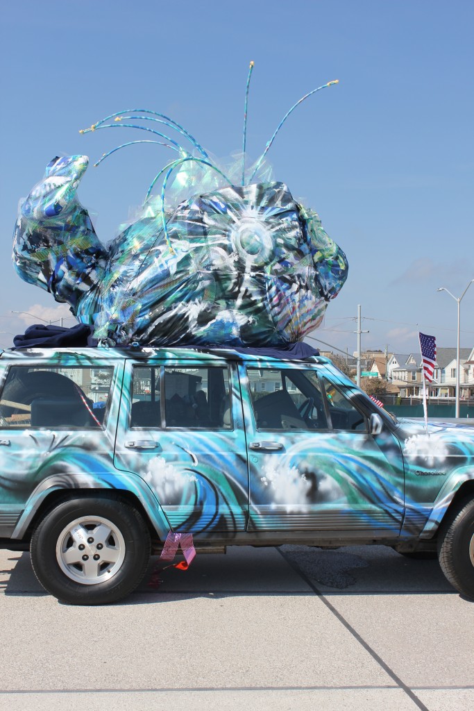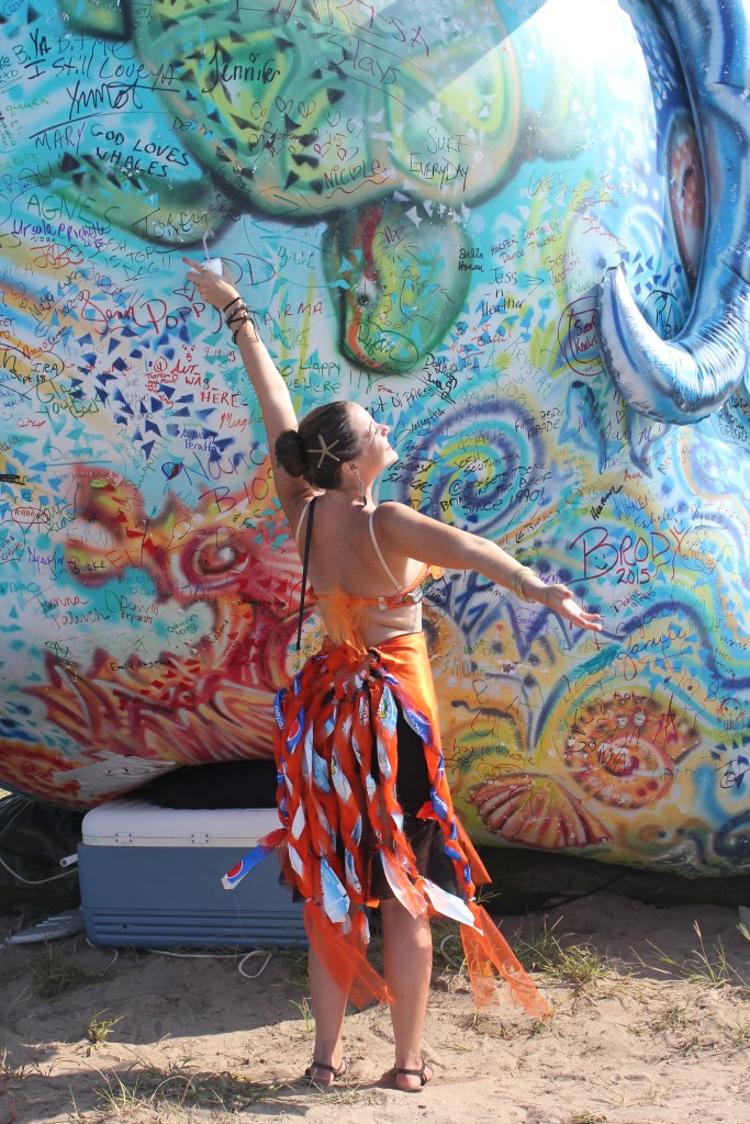 A large inflatable version of Whalemina was created by artist Geoff Rawling and anchored to a grassy spot near the boardwalk at Beach 95th Street for the duration of the parade. Parade goers posed for photos and were encouraged to sign the big balloon as a tribute to Whalemina.