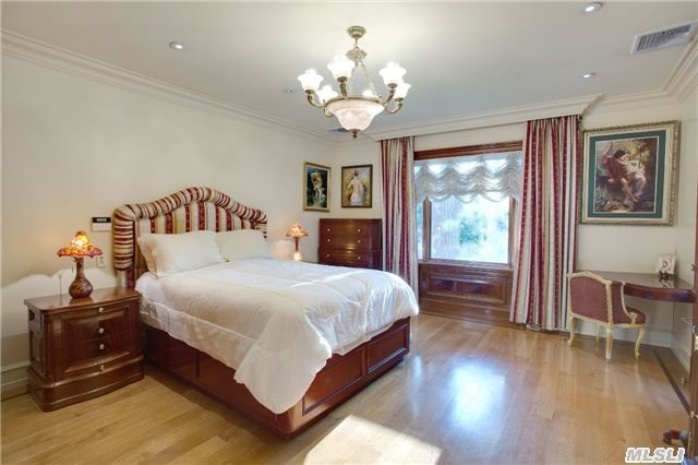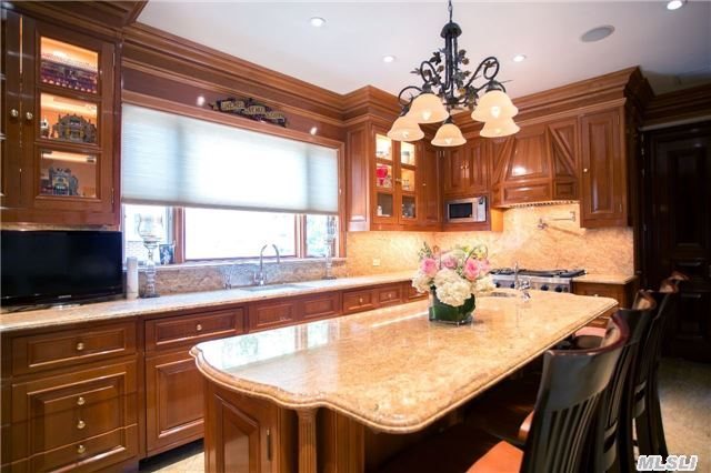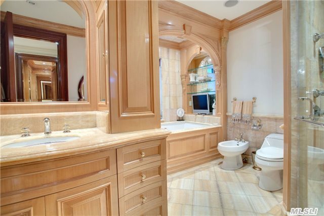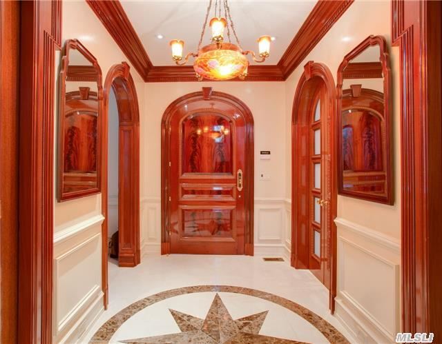 Offered by Douglas Elliman Real Estate for $1,988,000, the home at 6-19 161st St. features a spacious foyer with marble floors and a parlor lined with custom, cherry wood vanities.