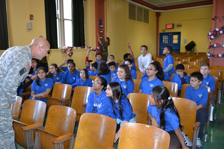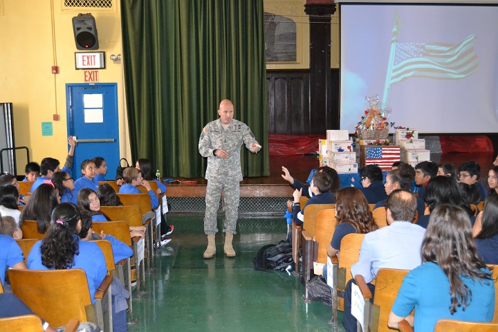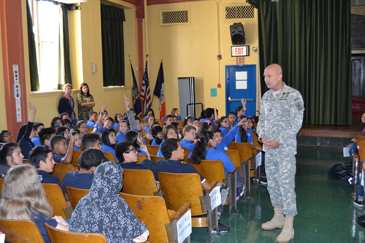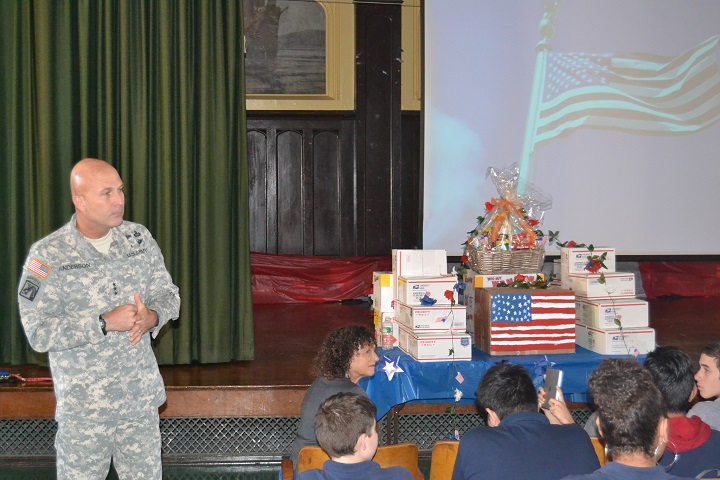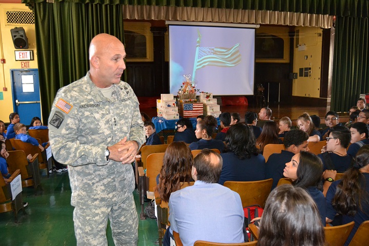 The students at Ridgewood’s I.S. 93 got a big surprise when Lieutenant General Joseph Anderson, the Deputy Chief of Staff G-3/5/7 for the United States Army, visited the school to talk to the students and thank them for their generous donations to the Adopt-a-Soldier program.