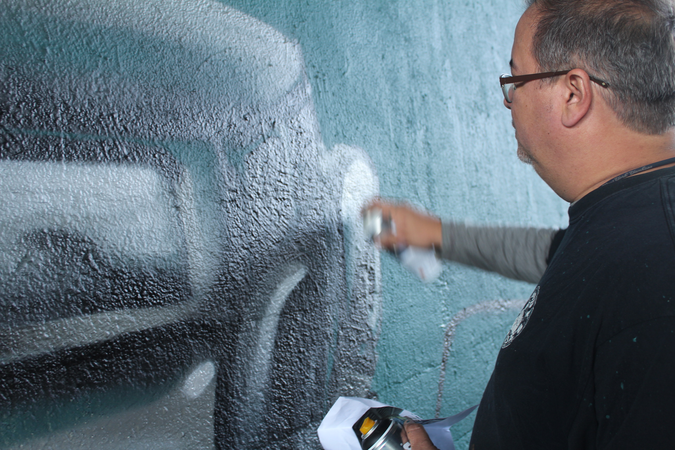 He also works with specific community groups to brainstorm ideas for each mural. Councilman Costa Constantinides worked with Sheroff to make the mural a reality and visited the site to check on its progress.