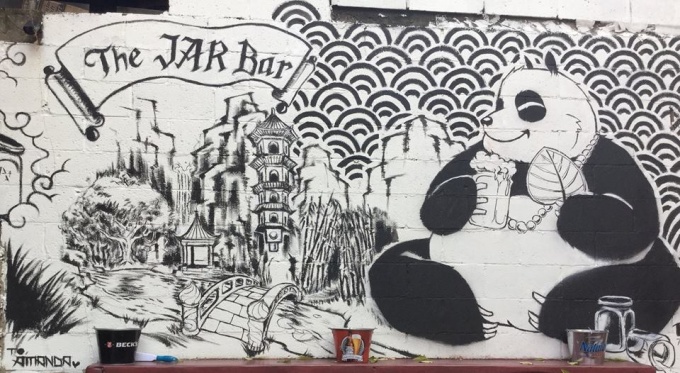 An outdoor beer garden that seats more than a dozen comfortably is visually accompanied by a mural designed by Sunnyside resident Peng Fan, who decorated the wall as a wedding present to his wife last Summer. Peng’s work can also be found in Brooklyn and China.