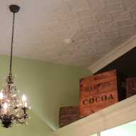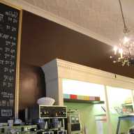 Libertini kept the shop’s original sculpted tin ceiling and gave it a fresh coat of white paint. He also added enchanting crystal leaf chandeliers and warmed up the shop’s walls with pistachio and warm chocolate hues. Antique cocoa shipping crates and boxes line the tops of the shelves as a nod to the shop’s rich history.